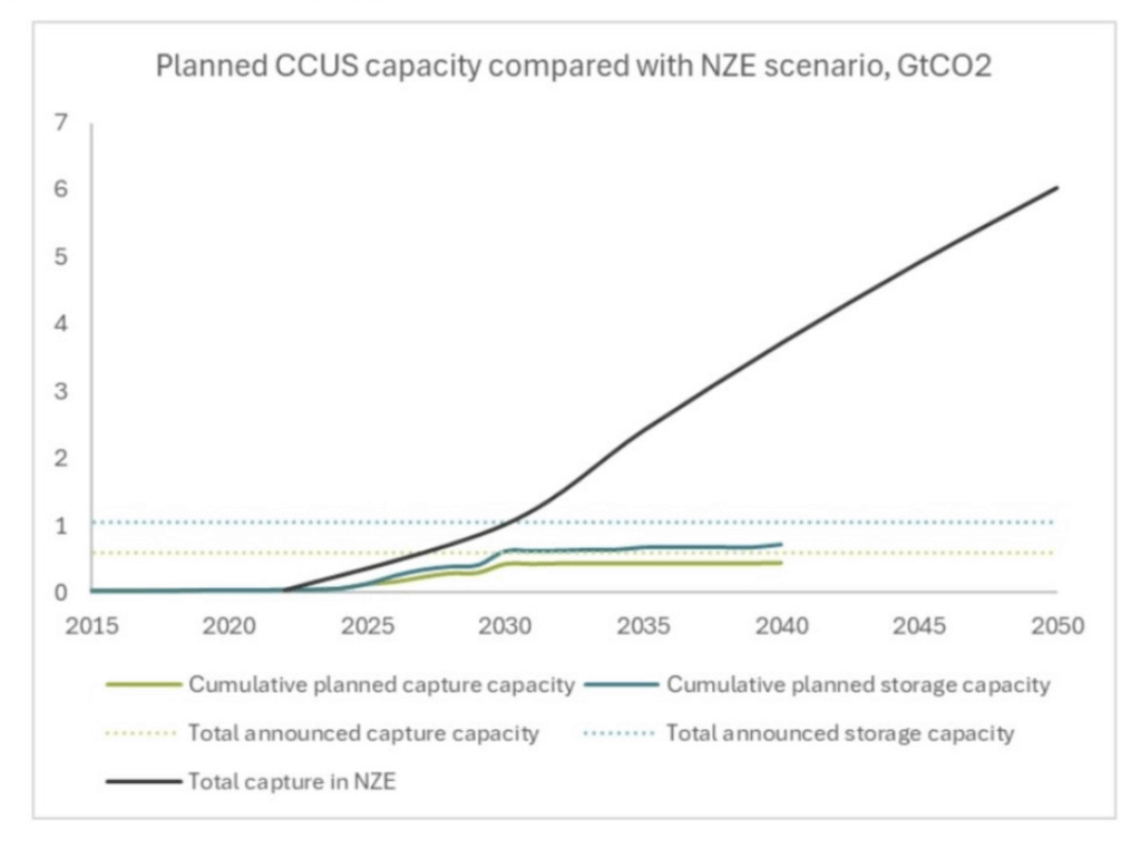 Reliance on CCUS poses substantial technical, economic and scalability risks. It cannot capture 100% of emissions; residual emissions are inevitable. The IEA’s latest NZE scenario, for example, downgraded its estimates for captured CO2 by 39% for 2030 and 22% for 2050 compared to the first NZE scenario released in 2021.